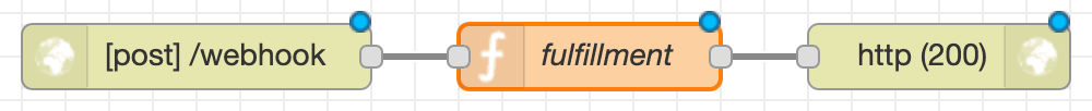 function node に Dialogflow の Responses を設定します。ここでは固定にしていますが、動的に返すこともできます。